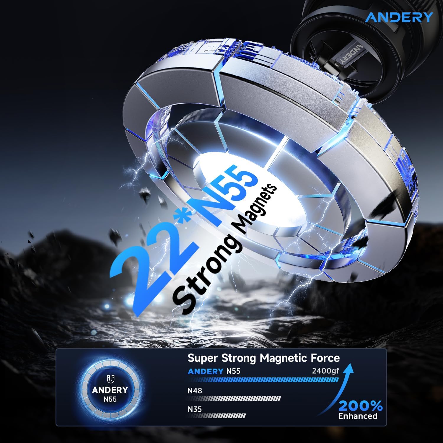 - Stronger Magnetic Force: With 22 high-performance N55 magnets, this mount's magnetic strength is 200% stronger than standard magnets, providing a top-tier hold with up to 2400gf of force. It can support the weight of up to 50 phones. After 5000 vibration tests and extreme road simulations, your phone stays secure during bumps, sudden stops, or sharp turns. The precise magnetic design ensures strong adhesion without disrupting phone signals for clear navigation and calls.